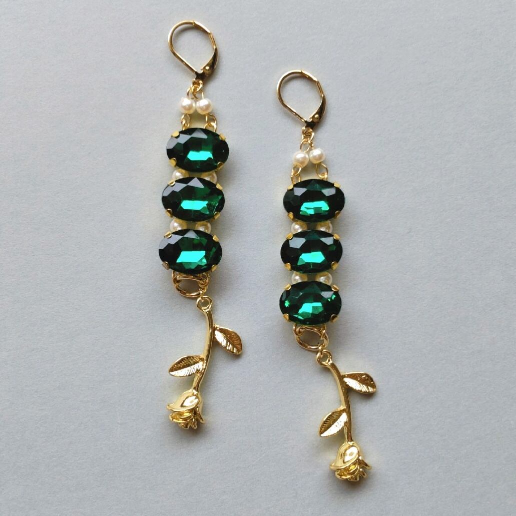 夜に咲く美しき花の茨、それを宝石に集めたような耳飾りです。