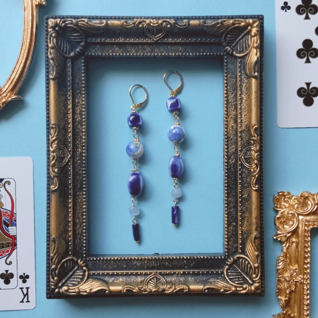 真青と花柄のパーツはすべて陶器で、陶器特有の艶感と澄んだ色彩が綺麗です。