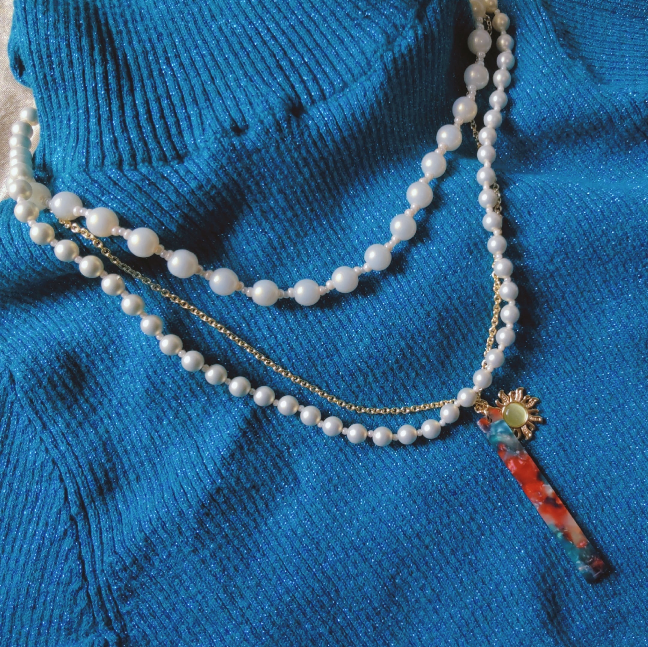 チャームネックレスは太陽と鮮やかなプレートチャームで、陽の差し込む龍宮城の色彩のイメージです。