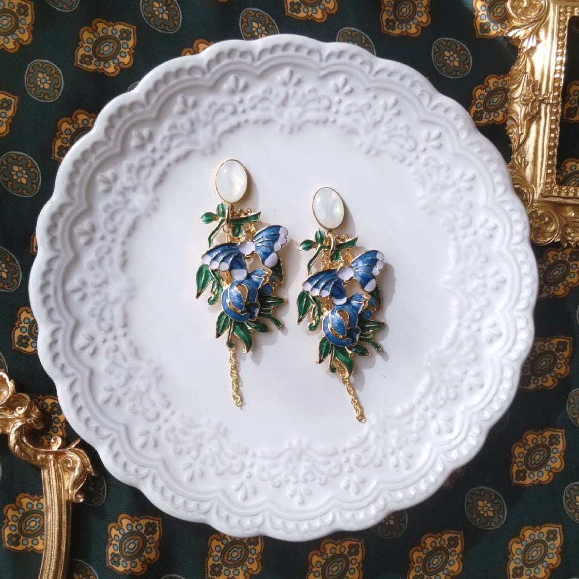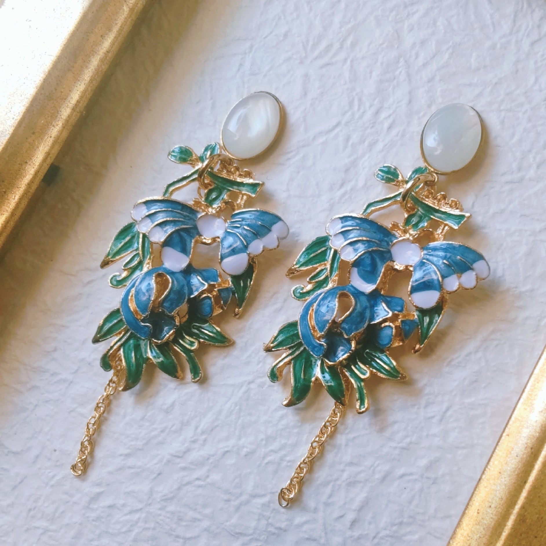華やかでオリエンタルな屏風絵のような耳飾り。