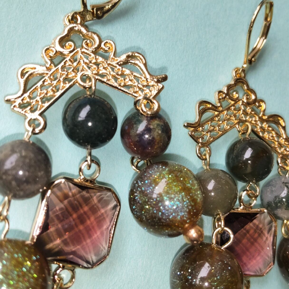木々や地の色彩をぎゅっと集めたような耳飾り。