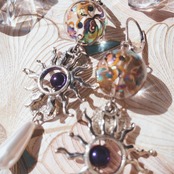 神々しさ感じる存在感のあるシルバーベースの耳飾り。