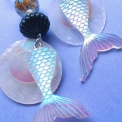 目を引く人魚の尾のパーツは半透明の白ベースにオーロラカラーが艶めきます。背後には同じくオーロラカラーの円状パーツとシェルの円状パーツ。トップの文様パーツはほんのりと和的でミステリアス。