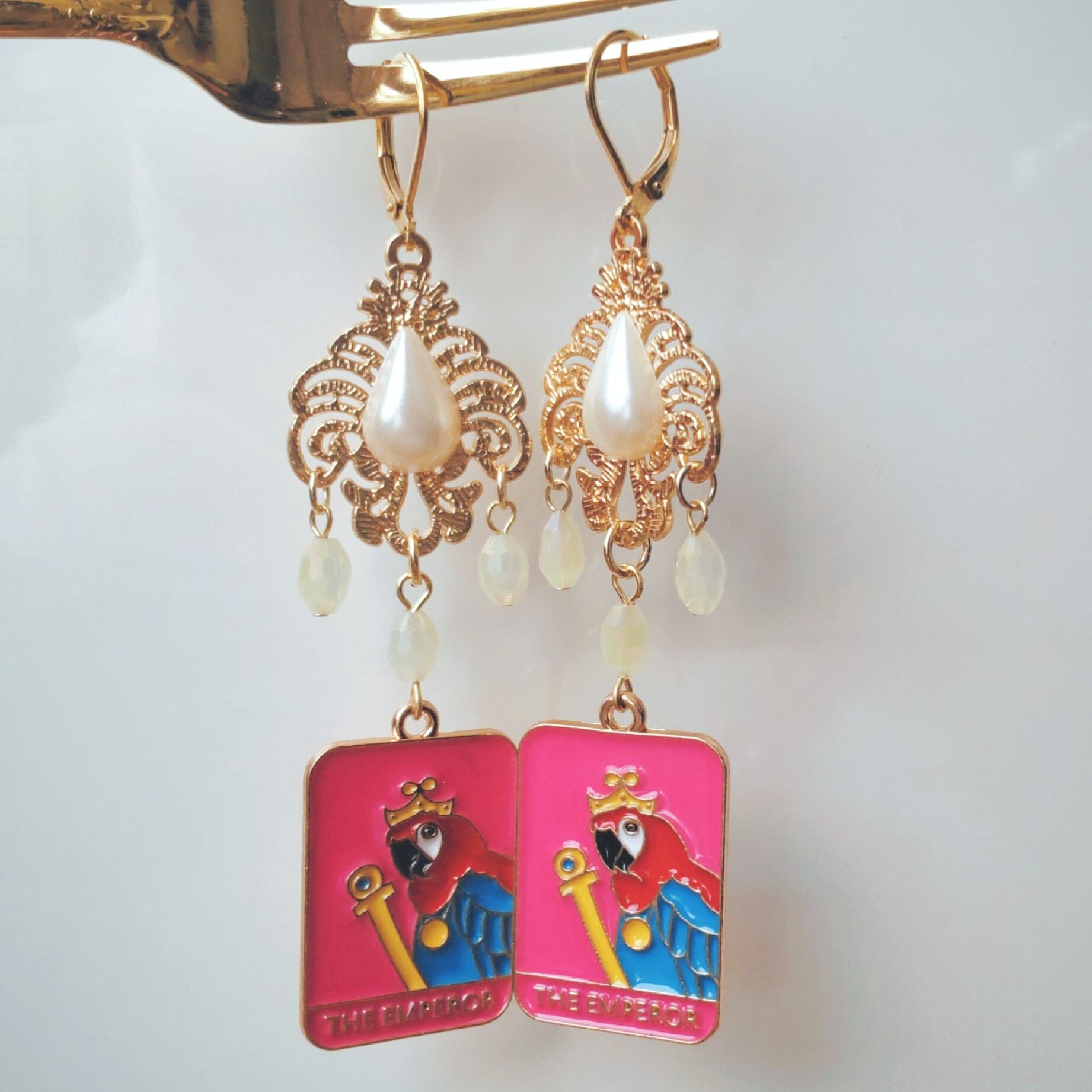 正義や統制を意味する皇帝のカード、そして元気をくれるようなカラーがきっと自信を与えてくれる耳飾りです。