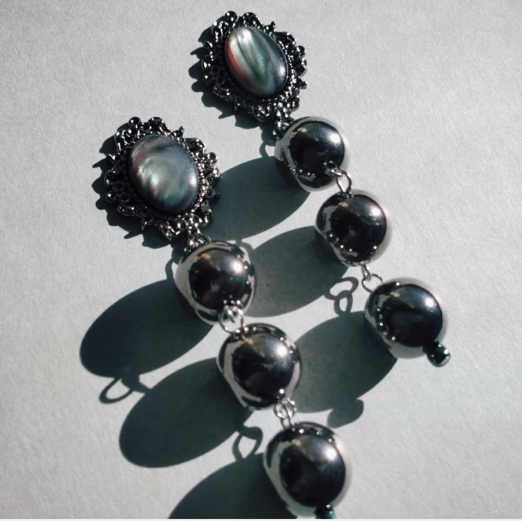 シンプルでも存在感のあるダークシルバーの耳飾り。